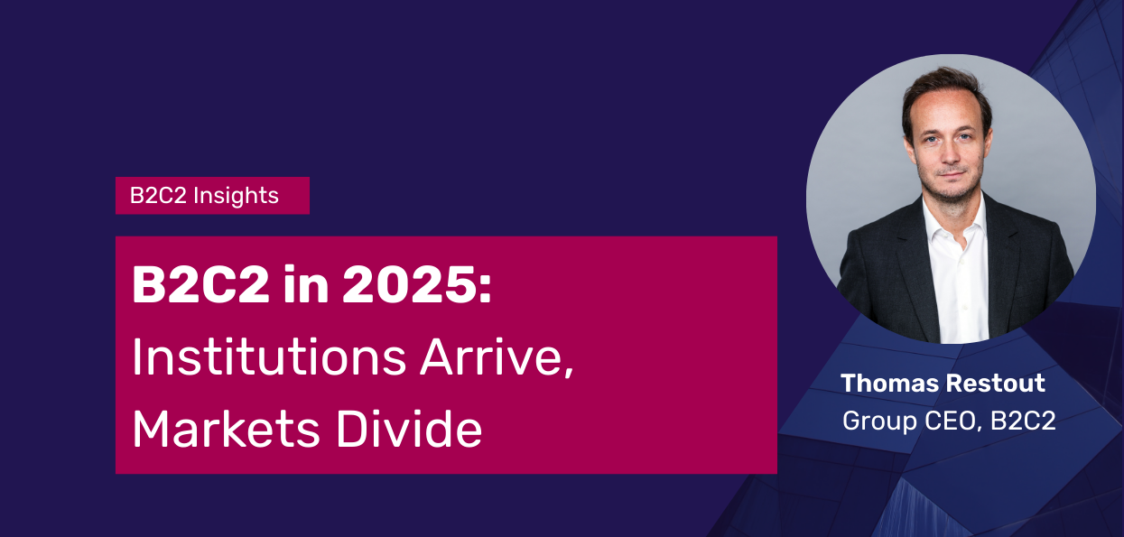 Sign up to our news alerts to receive insights into the crypto market. B2C2 does not transact with or provide any service to any retail investor or consumer. By subscribing to our content, you represent that you are not a retail investor or consumer. Please refer to our disclaimer for further information.